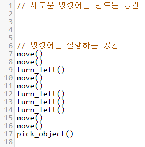 버튼을 클릭하면 플레이봇에서 사용되는 모든 명령어를 마우스 클릭으로 사용할 수 있어서구문 오류를 줄일 수 있답니다.