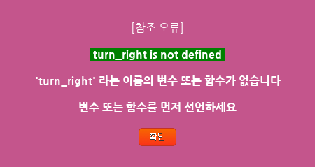 앗! 저런. turn_right()라는 명령어가 없다는 오류가 생겼네요. |