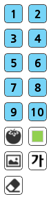 칸에 글자를 쓸 때는 먼저 글자를 쓰려는 칸을 더블클릭하고 버튼을 선택해요.왼쪽 그림과 같은 화면이 나타나면 글자를 입력하고 글자색을 골라서 칸에 글자를 쓸 수 있어요. 글자를 쓴 후에는 다른 칸을 마우스 오른쪽 버튼으로 클릭해서 똑같은 글자를 계속해서 쓸 수 있어요. |