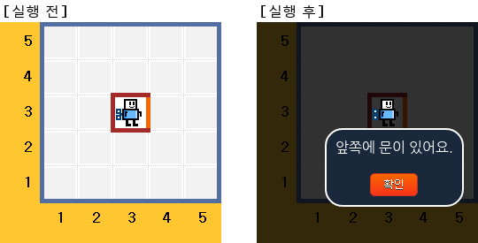 로봇 앞쪽에 문이 있는지 알아내는 명령어이다.문이 있으면 true