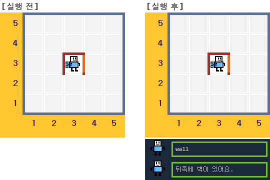 로봇 뒤쪽에 있는 장애물이 무엇인지 알아내는 명령어이다.